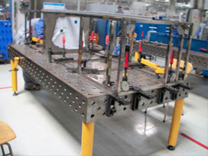 柔性組合工裝平臺可以在三維空間進行組合。標準化、模塊化夾具系統在安裝、調整和夾緊工件中地體現了它的通用性功能,在大型工件的焊接上,該 點 突出。柔性化的另一面體現在操作簡便,可以實現傻瓜式操作。在工裝平臺和標準模塊上,所有以 12.5mm和25mm為倍數的尺寸均可直接找到,再配上少量的調整片,可以 方便地準確定位。