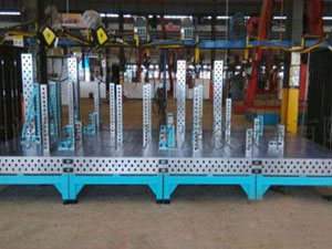 三維柔性平臺適用范圍:用于焊接、機械加工和檢測工件。例如:鋼結構、各種車輛車身制造、自行車摩托車制造、工程機械、框架和箱體、壓力容器、機器人焊接、鈑金加工、金屬家具、設備裝配、工業管道(法蘭)、檢測系統、電器機械(壓開關、變壓器、電力控制等)。三維柔性平臺的承載能力,鋼性穩定,它的五個面均加工有規則的孔,并刻有網線。焊接平臺可方便地延伸和擴展,組合。經擴展的標準臺面可模塊化的定位和夾緊直接連接在一起。在安裝、調整和定位工件過程將柔性三維組合焊接工裝系統的通用功能展示的淋漓盡致,尤其在了大型工件方面的應用上。專用工裝和柔性工裝的對比表