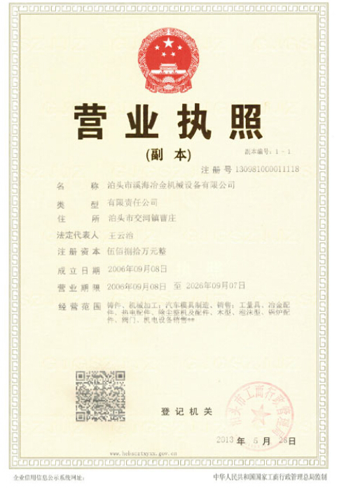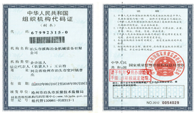 泊頭市溪海冶金機械設備有限公司 » 榮譽資質